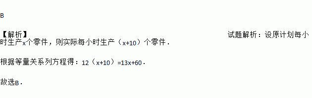 某车间原计划13小时生产一批零件,后来每小时多生产10件,用了12小时不但完成了任务,而且还多生产60件.设原计划每小时生产x个零件,则所列方程为( )