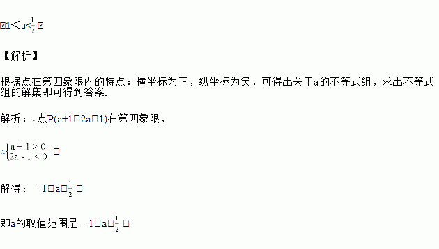 已知点P(a+1,2a﹣1)在第四象限,求a的取值范围.