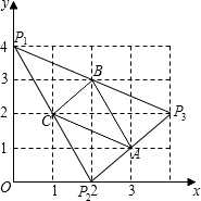 分析:可先根据图中ABC三点的坐标求出△ABC各边的长度,因为新构造的以P为一顶点的三角形与△ABC有一公共边,所以若新构造的三角形与原三角形全等,它们必关于公共边中点中心对称,或关于公共边轴对称,据此可作图,若P点在格点上则满足条件.