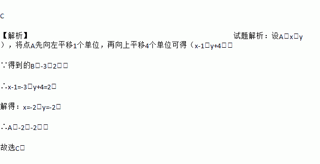 若将点A先向左平移1个单位,再向上平移4个单位,得到的B(-3,2),则点A的坐标为( )