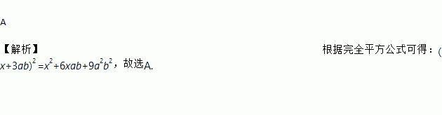 A. x2+6xab+9a2b2 B. x2+6ab+9a2b2 C. x2+xab+9a2b2 D. x2+6xab+a2b2