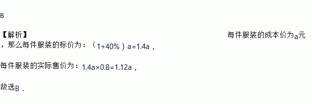 某件商品的成本价为a元,按成本价提高40%后标价,又以8折销售,则这件商品的售价为( )
