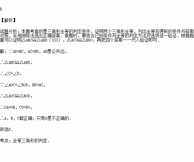 如图,AD=BC,AC=BD,则下列结论中,不正确的是( )