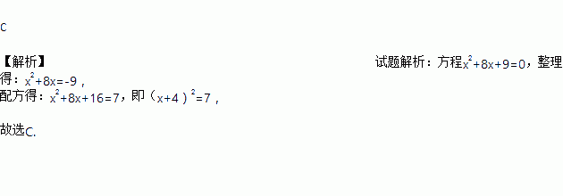 A. (x+4)2=﹣7 B. (x+4)2=﹣9 C. (x+4)2=7 D. (x+4)2=25