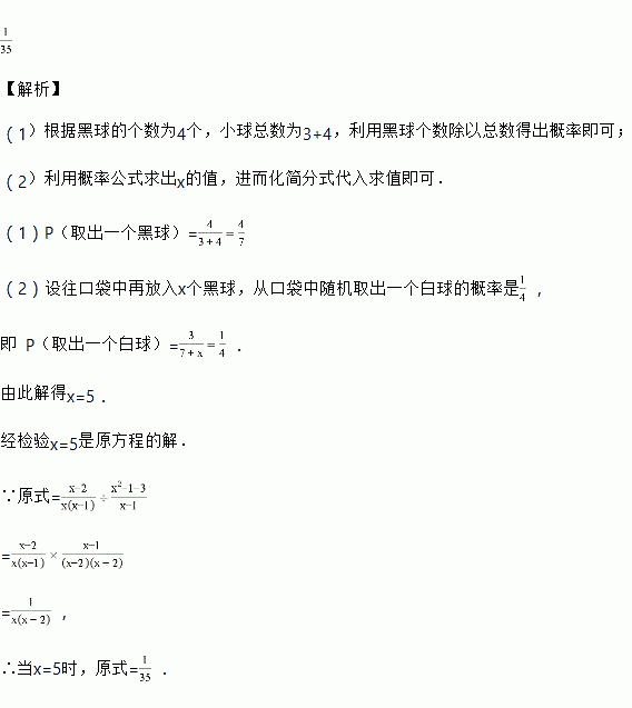 (2)若往口袋中再放入x个黑球,且从口袋中随机取出一个白球的概率是