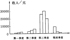 (4)从图上可以看出,第三季度收入最多,第一季度收入最少,在安排工作时要注意季节性安排.