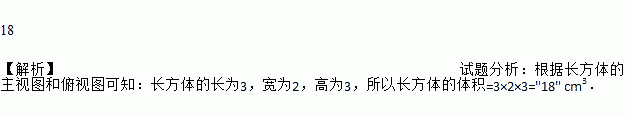 如图,这是一个长方体的主视图和俯视图,由图示数据(单位:cm)可以得出该长方体的体积是________cm3.