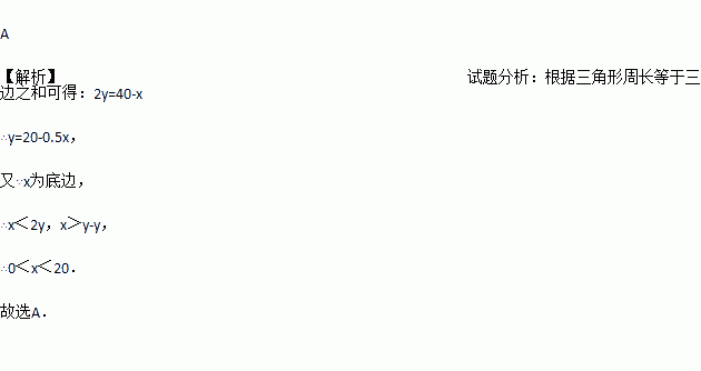 等腰三角形的周长是40cm,腰长y (cm)是底边长x (cm)的函数解析式正确的是( )