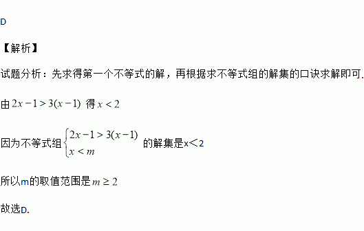 如果不等式组的解集是x<2,那么m的取值范围是( )