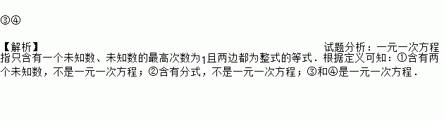 在下列方程中 ①,②,③,④,是一元一次方程的有________.(填番号)