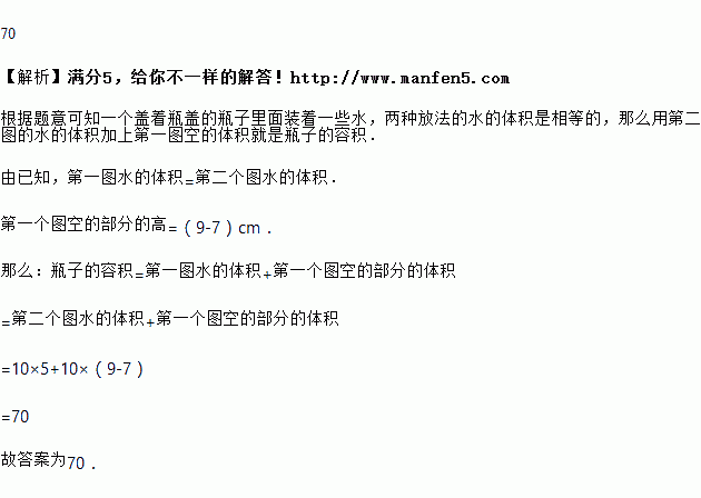 一个盖着瓶盖的瓶里装着一些水,如图所示根据图中标明的数据计算瓶子的容积是_______