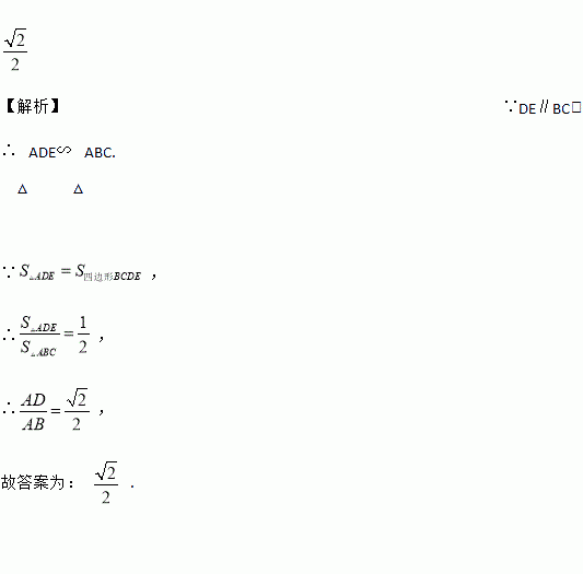 如图,平行于BC的直线DE把△ABC分成的两部分面积相等,则=_____.