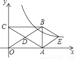 如图,在平面直角坐标系中,矩形OABC的对角线OB、AC相交于点D,BE∥AC,AE∥OB.函数(k>0,x>0)的图象经过点E.若点A、C的坐标分别为(3,0)、(0,2),则k的值为( )