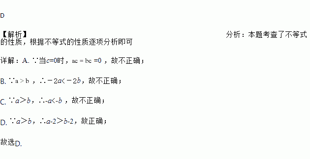 C. 由a>b,得-a>-b D. 由a>b,得a-2>b-2