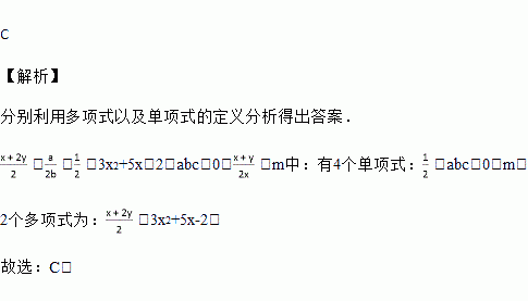 A. 有5个单项式,1个多项式 B. 有3个单项式,2个多项式