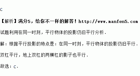 (题文)在操场上练习双杠的过程中发现双杠的两横杠在地上的影子( )