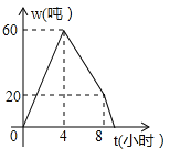 某仓库调拨一批物资,调进物资共用8小时,调进物资4小时后同时开始调出物资(调进与调出的速度保持不变).该仓库库存物资W(吨)与时间t(小时)之间的函数关系如图所示.则这批物资从开始调进到全部调出所需要的时间是( )