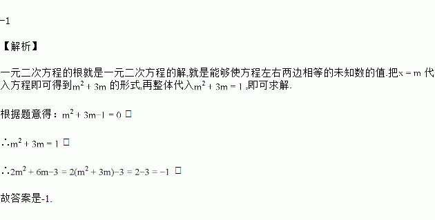 已知是方程的一个根,则代数式的值为_______.