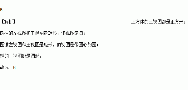 如图,在下列四个几何体中,它的三视图(主视图、左视图、俯视图)不完全相同的是( )