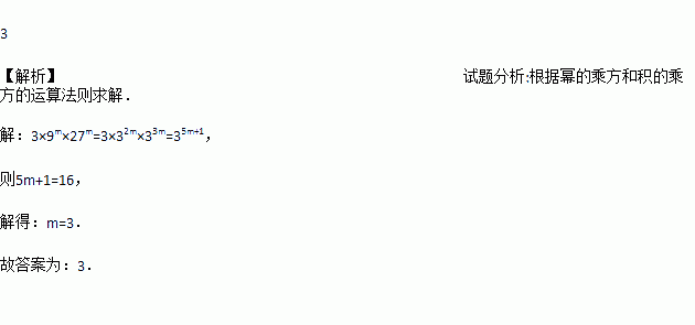 已知 3×9m×27m=316,则m的值为__________.