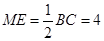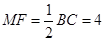 如图,在△ABC中,CF⊥AB于F,BE⊥AC于E, M为BC的中点,EF=5,BC=8,则△EFM的周长是:(     )