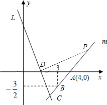 如图,已知直线L的解析式为y=-3x+3,且L与x轴交于点D,直线m经过点A、B,直线L、m交于点C.