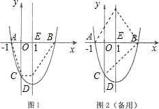 如图1,已知:抛物线y=ax2+bx-3与x轴交于A、B两点,与y轴交于点C,顶点为D,对称轴x=1与x轴交于点E,A(-1,0).