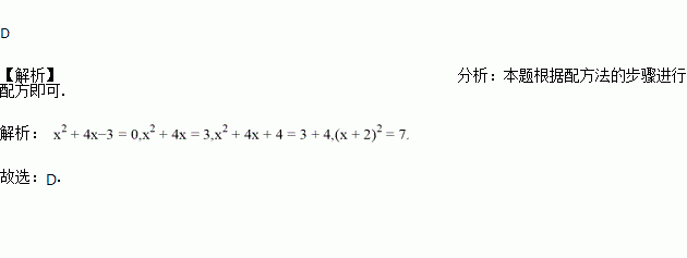用配方法解一元二次方程x2+4x﹣3=0时,原方程可变形为( )