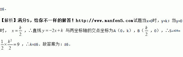 如果直线 y=-2x+k 与两坐标轴所围成的三角形面积是 9,则 k的值为_____.