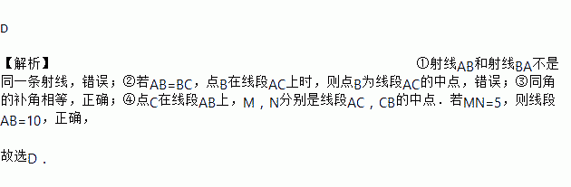 ④点C在线段AB上,M,N分别是线段AC,CB的中点.若MN=5,则线段AB=10.