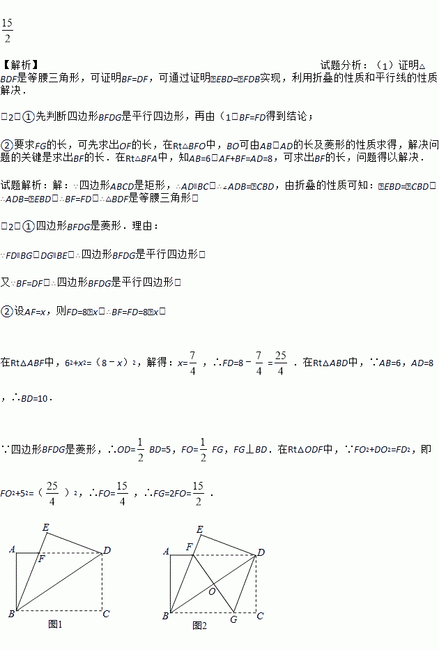 ②若 AB=6,AD=8,则 FG 的长为_____.