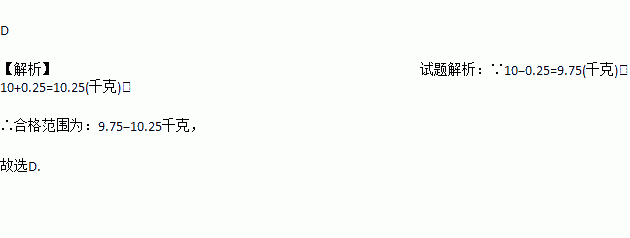 一种袋装大米的质量标识为“10±0.25千克”,则下列几袋大米中合格的是( )
