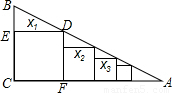 如图,在Rt△ABC中,∠C=90°,BC=1,AC=2,把边长分别为x1,x2,x3,…,xn的n个正方形依次放入△ABC中,请回答下列问题:(1)按要求填表: