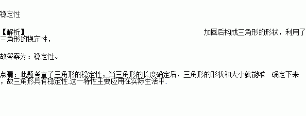 在生活中我们常常会看见如图所示的情况,在电线杆上拉两条钢绳来加固电线杆,这是利用了三角形的___________.