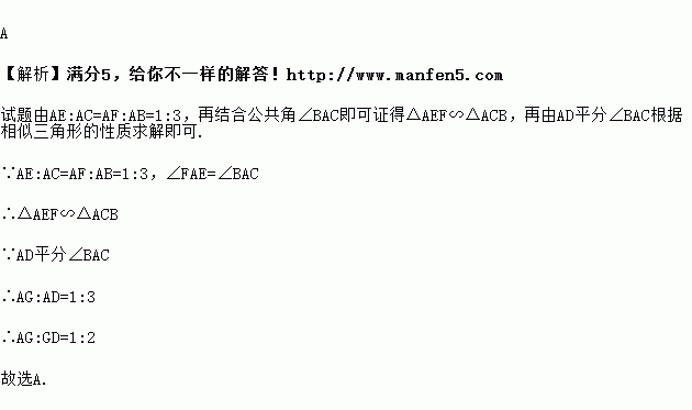如图,在ABC中,AD平分∠BAC,AE:AC=AF:AB=1:3,那么AG:GD的值为 ( )