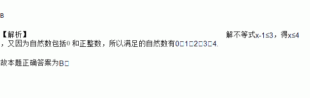 满足不等式x-1≤3的自然数是()