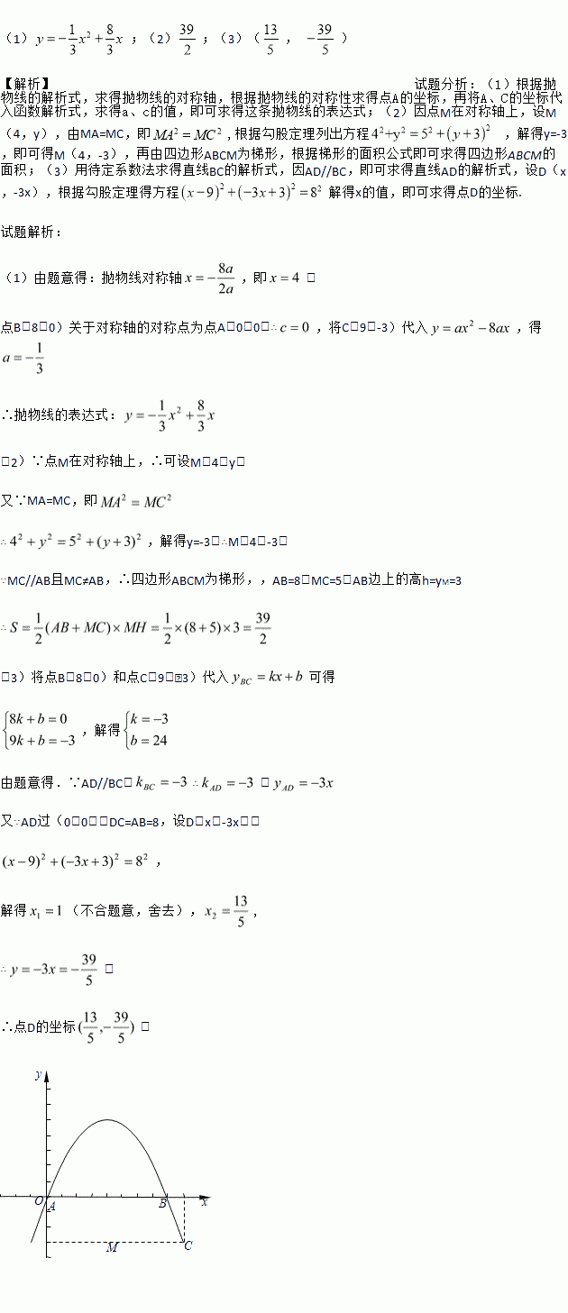 (a,c是常数,a≠0)经过点B、C,且与x轴的另一交点为A.对称轴上有一点M ,满足MA=MC.