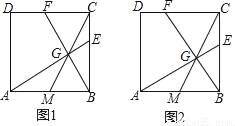 (1)如图1,点G为线段CM上的一点,且∠AGB=90°,延长AG、BG分别与边BC、CD交于点E、F.