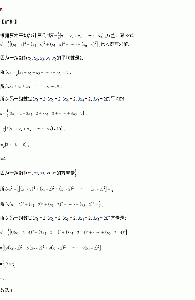 ,那么另一组数据3x1﹣2,3x2﹣2,3x3﹣2,3x4﹣2,3x5﹣2的平均数和方差分别是( )