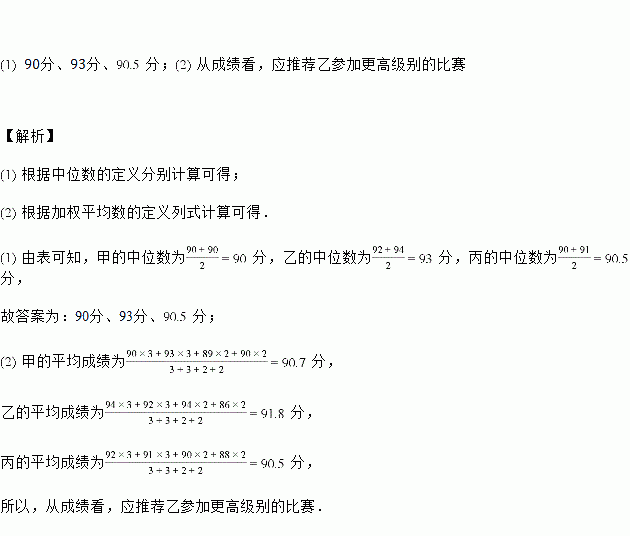 ¼×¡¢ÒÒ¡¢±ûÈýλͬѧ³É¼¨µÄÖÐλÊý·Ö±ðΪ______£»![]()