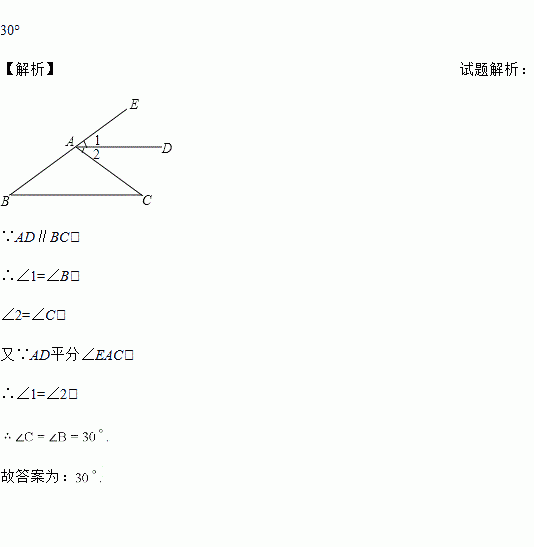 如图,AD是∠EAC的平分线,AD∥BC,∠B=30°,则∠C=___________.