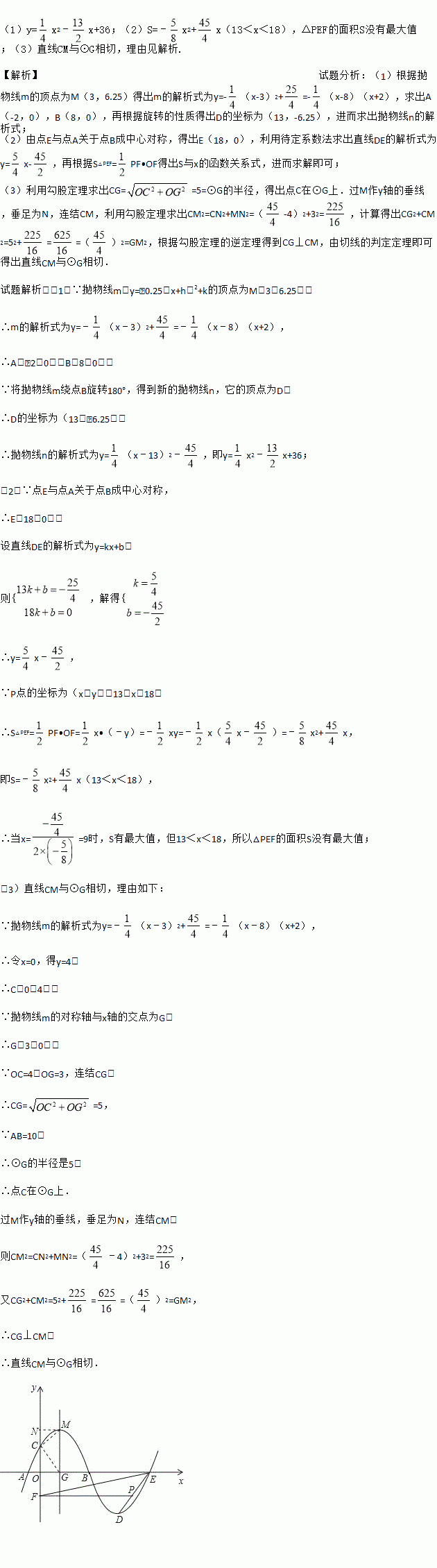 如图,抛物线m:y=﹣0.25(x+h)2+k与x轴的交点为A,B,与y轴的交点为C,顶点为M(3,6.25),将抛物线m绕点B旋转180°,得到新的抛物线n,它的顶点为D.