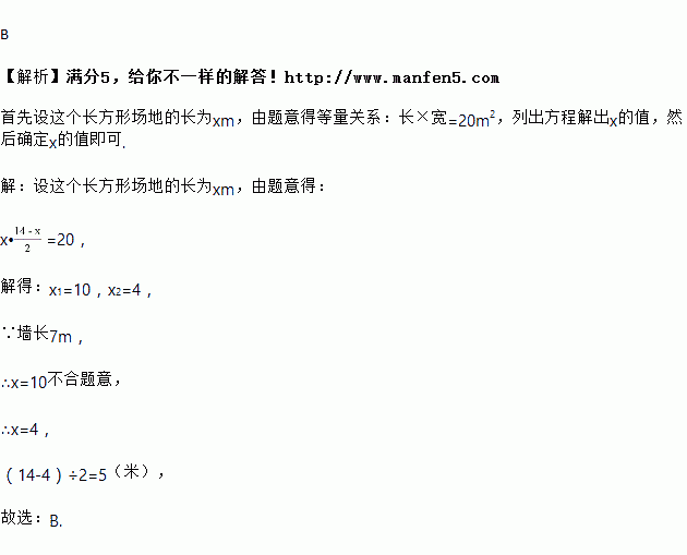 一边靠墙(墙长),另三边用的木栏围成一个长方形,面积为,这个长方形场地的长为( )