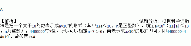 A. 4.4×106 B. 44×105 C. 4×106 D. 0.44×107