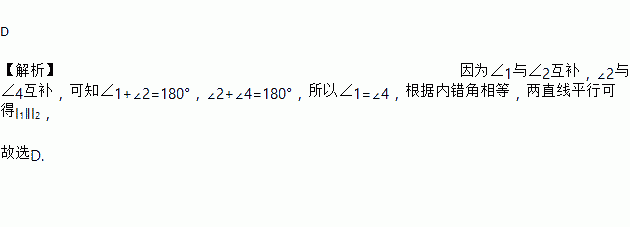 如图所示,若∠1与∠2互补,∠2与∠4互补,则( )