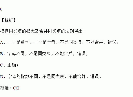 A. 3+2ab="5ab" B. 5xy–y="5x" C. -5n+5n=" 0" D. –x =