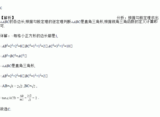 如图,在4×4的矩形网格中,每格小正方形的边长都是1,若△ABC的三个顶点在图中相应的格点上,则tan∠ACB的值为( )