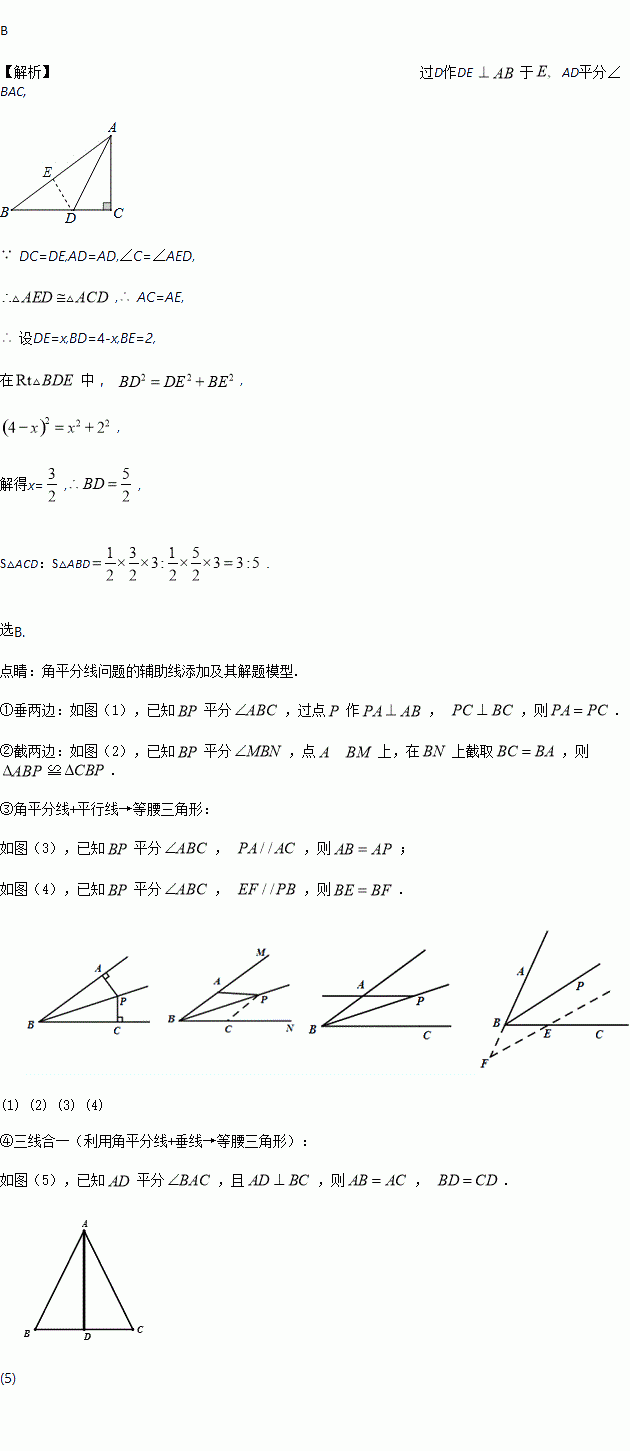 如图,Rt△ABC中,∠C=90°,AC=3,BC=4,AB=5,AD平分∠BAC.则S△ACD:S△ABD=( )