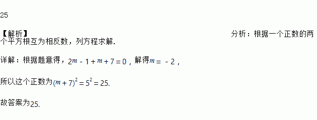 一个正数的两个平方根分别为2m-1和m+7,则这个正数是____________.