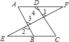 理由:∵∠1=∠2,